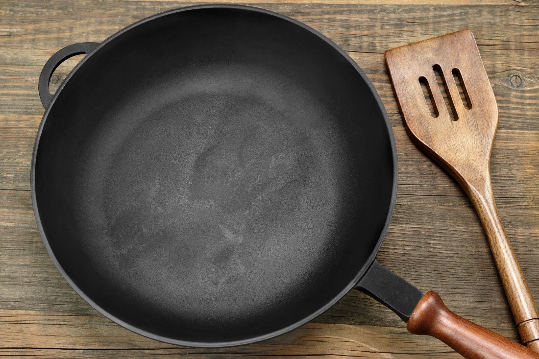 It’s well known that you shouldn’t wash cast iron pans with soap since the chemicals in soap can lessen the pan’s ability to keep food from sticking. However, this doesn’t mean you should leave the pan dirty after each use. Instead, sprinkle some salt on the cast iron’s surface. Cut a potato in half and use the side without skin to rub the surface. This method will help you get rid of old food residues. After cleaning, apply some oil and heat the cast iron in an oven. Then you can store the pan until its next use.